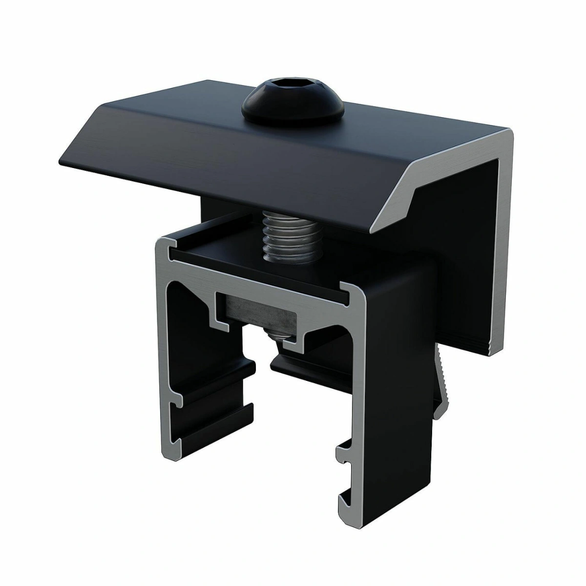 Höhenverstellbarer Endhalter. Einsetzbar für alle gängigen gerahmten Module.